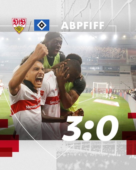 6月2日讯 德甲升降级附加赛首回合,德甲第16名斯图加特主场对阵德乙第3名汉堡,比赛刚开始不到一分钟,斯图加特角球机会,马夫罗帕诺斯头球破门。下半场比赛,第51分钟约沙-瓦格诺曼帮助斯图加特扩大领先,三分钟后,角球机会吉拉西头球破门,斯图加特三球领先。第69分钟,汉堡球员安西-苏霍宁染红,汉堡10人迎战。最终全场比赛结束,斯图加特3-0轻取汉堡占得先机。两队的次回合比赛将在6月6日凌晨2:45进行,斯图加特将做客汉堡主场。
