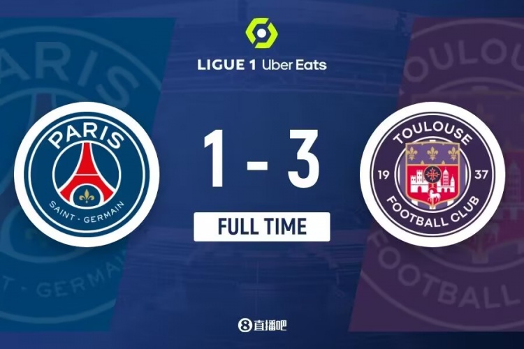 下半场补时4分钟。最终全场比赛结束,巴黎1-3图卢兹。