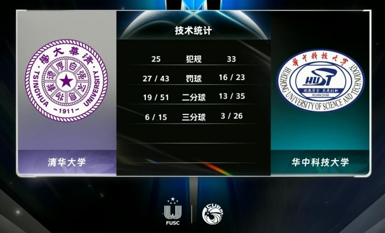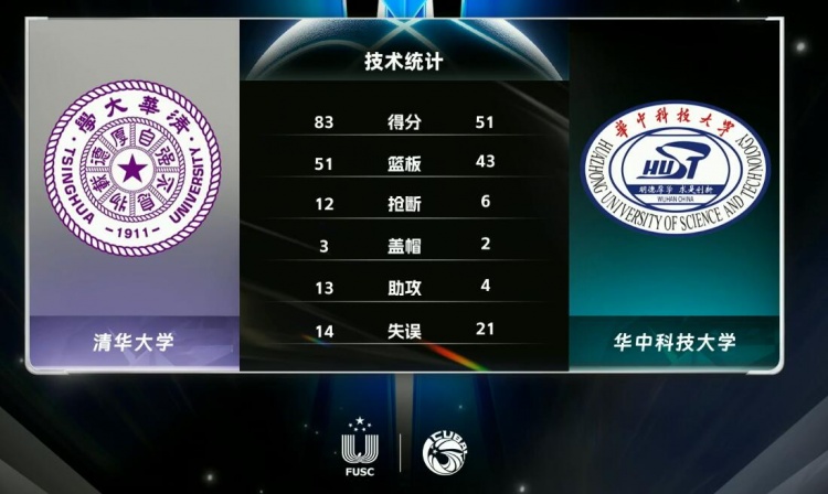 华中科技大学:高建军21分12篮板2封盖、张博雅10分3篮板、杨谭玥影6分4篮板、聂云翮5分、毕榕哲4分4篮板。