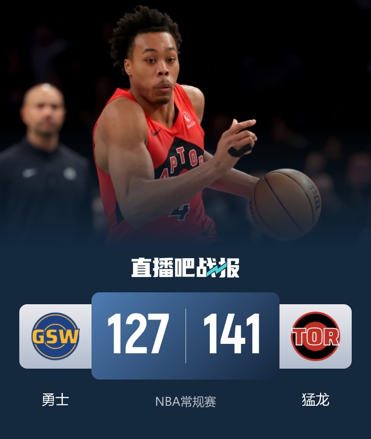 比赛开始,波斯特连中三分,猛龙内外开花给出回应,库里连投带罚拿分,猛龙多点开花逐渐占据场上主动,次节勇士发起反击,利用转换进攻打出11-0的攻击波强势反超,猛龙及时回暖,轮番冲击内线得手稳住局势,半场战罢猛龙65-64领先勇士。易边再战,勇士占得先机,追梦连得8分率队轰出17-4获得两位数领先,库里高效输出,此后勇士连续失误,猛龙8-0止血,末节勇士持续发力扩大领先,关键时刻猛龙奋力反击,奎克利扳平比分,英格拉姆绝杀三分不中,双方进入加时。加时赛,勇士完全哑火,猛龙10-0确立优势,勇士苦苦追赶无果。最终,猛龙加时141-127击败勇士。