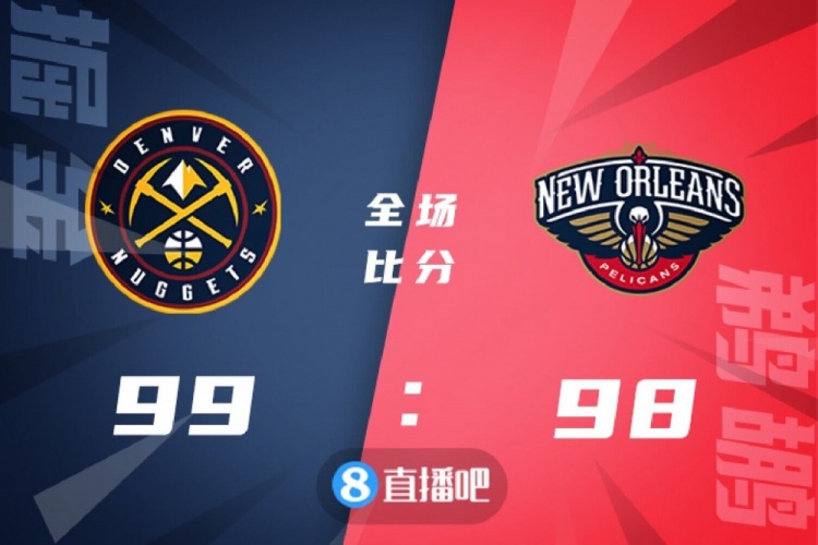 比赛开打后约基奇早早发力,首节他连续杀伤独得11分,瓦兰和麦科勒姆联手回应,双方你来我往比分紧咬,首节结束时掘金领先4分,次节回来,鹈鹕进攻突然断电,穆雷无人可挡单节狂砍16分,掘金抓住机会一波14-0拉开比分,半场战罢,掘金确立16分优势。下半场回来,掘金未能延续火力,鹈鹕进攻回暖不断追分,三节结束后掘金保有9分优势,末节上来,阿尔瓦拉多率领替补阵容继续发力,鹈鹕延续势头紧咬比分,决胜时刻埃尔南戈麦斯两罚全中一举反超,但约基奇抛投打进迅速夺回优势,麦科勒姆三分不中,掘金99-98险胜对手。