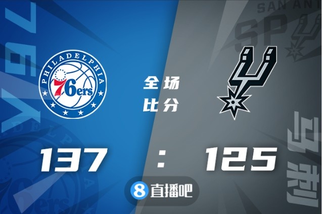 比赛开始,76人连续出现失误,但随后及时调整,76人内外开花连续拿分,马刺不断冲击内线得手还以颜色。76人连造杀伤取得优势,哈登恩比德联手将分差拉开到两位数,半场战罢76人73-62领先。易边再战,双方围绕10分左右的分差展开激烈争夺,马刺依旧频繁攻击篮筐拿分,76人连中三分将优势扩大到20分,马刺努力追赶但为时已晚,最终,76人击败马刺,送给对手8连败。