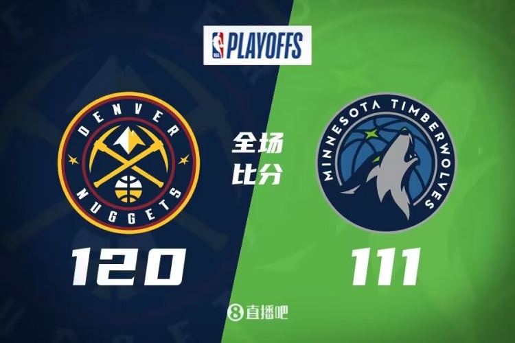 比赛上来森林狼率先进入状态打出7-2开局,但约基奇里突外投单节得分上双,带领掘金打出14-2的进攻波一举反超比分,次节双方展开拉锯战,约基奇开始串联球队,波普次节得分上双,掘金一波9-0小高潮建立起主动权并领先到双位数,好在唐斯手感不错带队追至差6分。下半场,掘金外线多点开花重新拉开双位数领先,但无奈防守端犯规早早犯满,爱德华兹单节砍下12分带领森林狼继续咬住比分,末节布劳恩成为奇兵连续取分,随后双方再次拉锯战,掘金始终保持两球以上领先,爱德华兹独木难支,最终掘金120-111力克森林狼,大比分3-0拿到晋级点。
