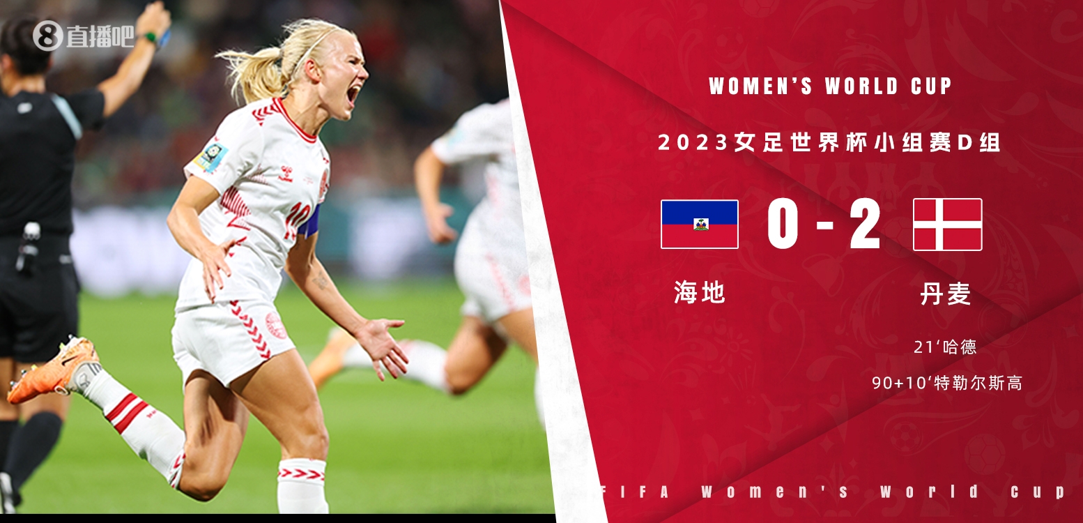 8月1日讯北京时间8月1日19:00,女足世界杯D组第三轮,海地女足vs丹麦女足。上半场,博耶补射破门被吹,皮埃尔-路易手球送点,哈德主罚命中为丹麦取得领先,补时阶段哈德再入一球,但越位在先被吹;下半场,哈德再入一球可惜犯规在先再次被吹无效,补时最后时刻,特勒尔思高破门锁定胜局。全场比赛结束,丹麦女足2-0海地女足,丹麦女足2胜1负积6分小组第二出线,1/8决赛将对阵澳大利亚!