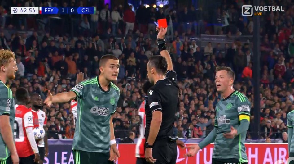 第64分钟拉格比尔克两黄变一红,68分钟霍尔姆染红,凯尔特人九人作战。