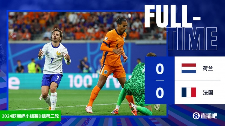 6月22日讯 北京时间凌晨3:00,欧洲杯小组赛D组第二轮焦点战,荷兰vs法国。上半场,弗林蓬开场造险;格列兹曼失空门;小图拉姆失单刀。下半场,格列兹曼又失良机!最终,荷兰0-0闷平法国队,本届欧洲杯首场0-0诞生!
