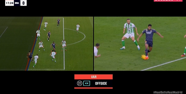 第90+7分钟,贝蒂斯前场任意球机会,伊斯科将球开向禁区,里亚德头球攻门被卢宁托出横梁。↓
