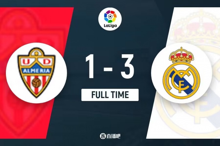 下半场补时9分钟。最终全场比赛结束,皇马3-1逆转客胜阿尔梅里亚。