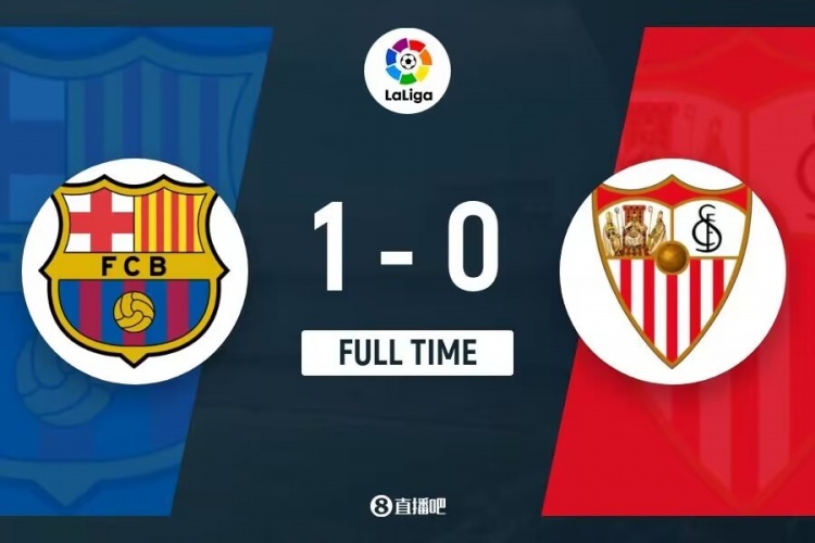 下半场伤停补时5分钟,全场比赛结束,最终巴萨1-0塞维利亚。