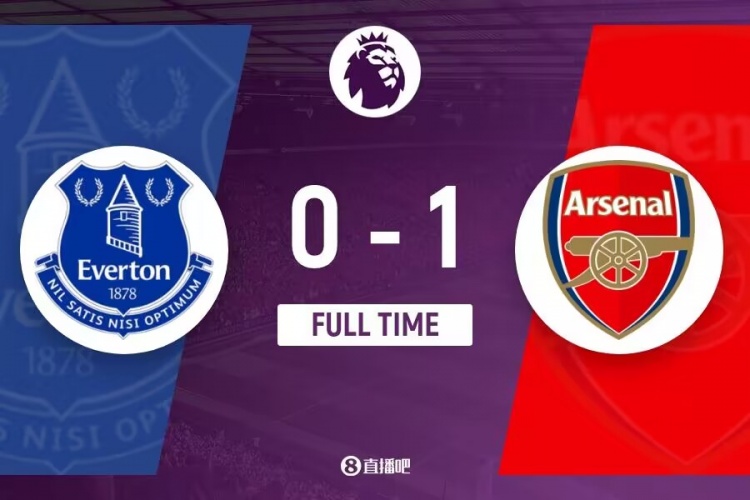 下半场伤停补时4分钟,全场比赛结束,最终阿森纳1-0埃弗顿。
