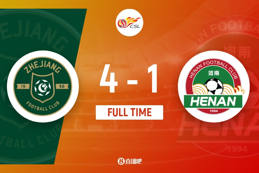 全场比赛结束,浙江4-1河南。