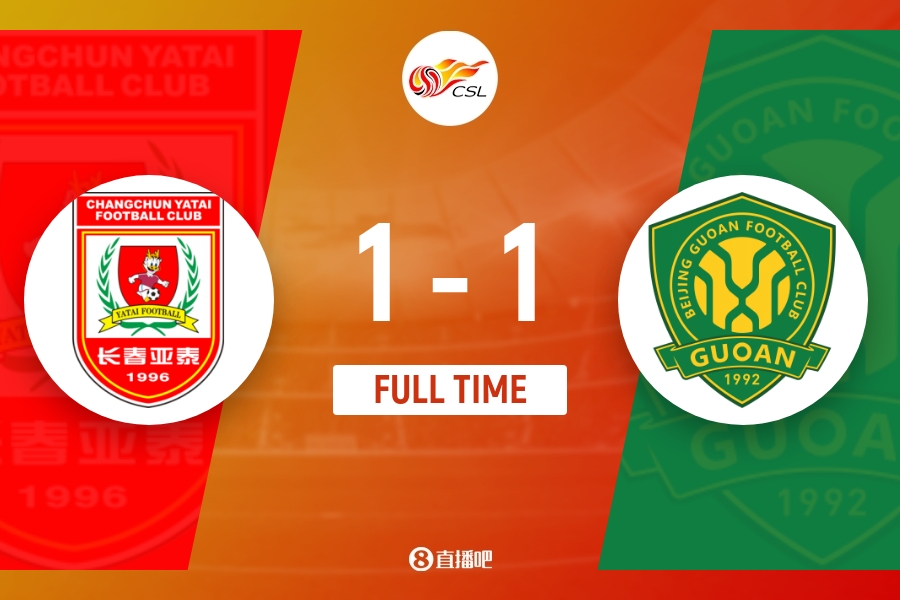 全场比赛结束,长春亚泰1-1北京国安。
