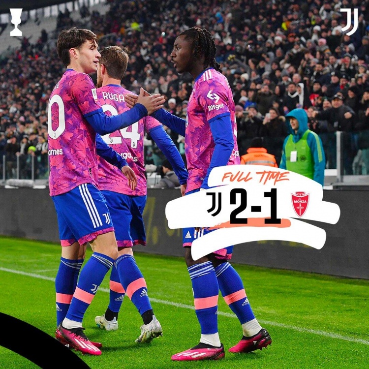 1月20日讯 北京时间1月20日凌晨4点整,2022-23赛季意大利杯1/8决赛在都灵安联竞技场展开角逐,尤文图斯坐镇主场迎战蒙扎。上半场基恩先拔头筹,瓦洛蒂头球扳平,下半场小基耶萨替补制胜收获复出后首球。最终尤文图斯主场2-1战胜蒙扎,尤文成功晋级意大利杯八强。