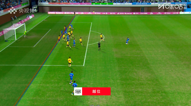 广东U20进球被吹越位无效!第53分钟,广东战术角球开出,钟文似传似射扫向禁区,无人盯防的梅帅军甩头破门!通过VAR,裁判吹罚黄梓舜越位参与进攻,进球无效!↓