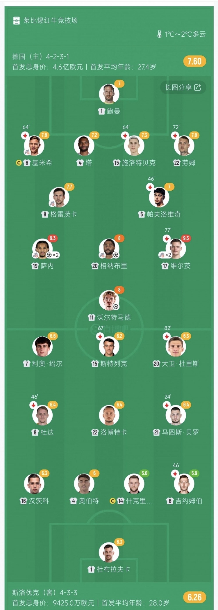 第36分钟,维尔茨送出长传助攻,萨内斜插杀入禁区单刀破门!德国3-0领先斯洛伐克↓