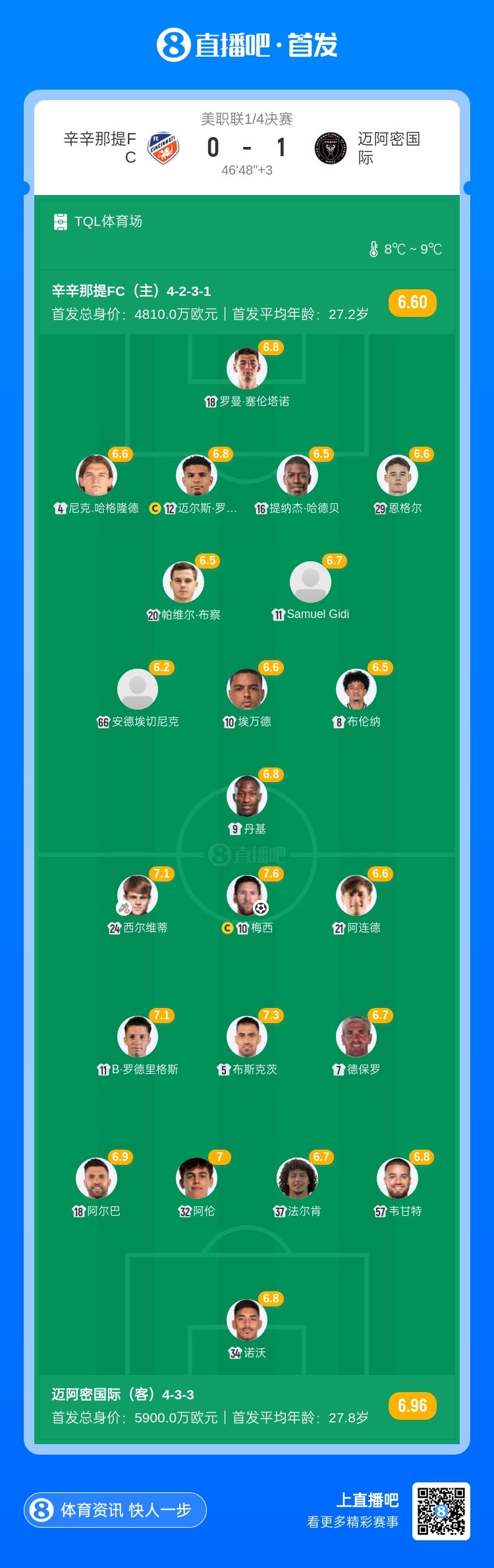 第19分钟,梅西分球边路,西尔维蒂左路传中,梅西跟上头球破门!迈阿密国际1-0领先辛辛那提↓