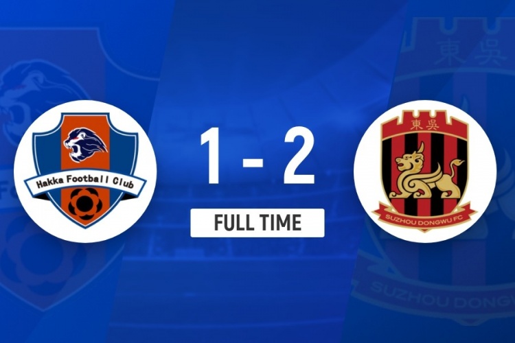 伤停补时7分钟。全场比赛结束,梅州客家1-2苏州东吴。