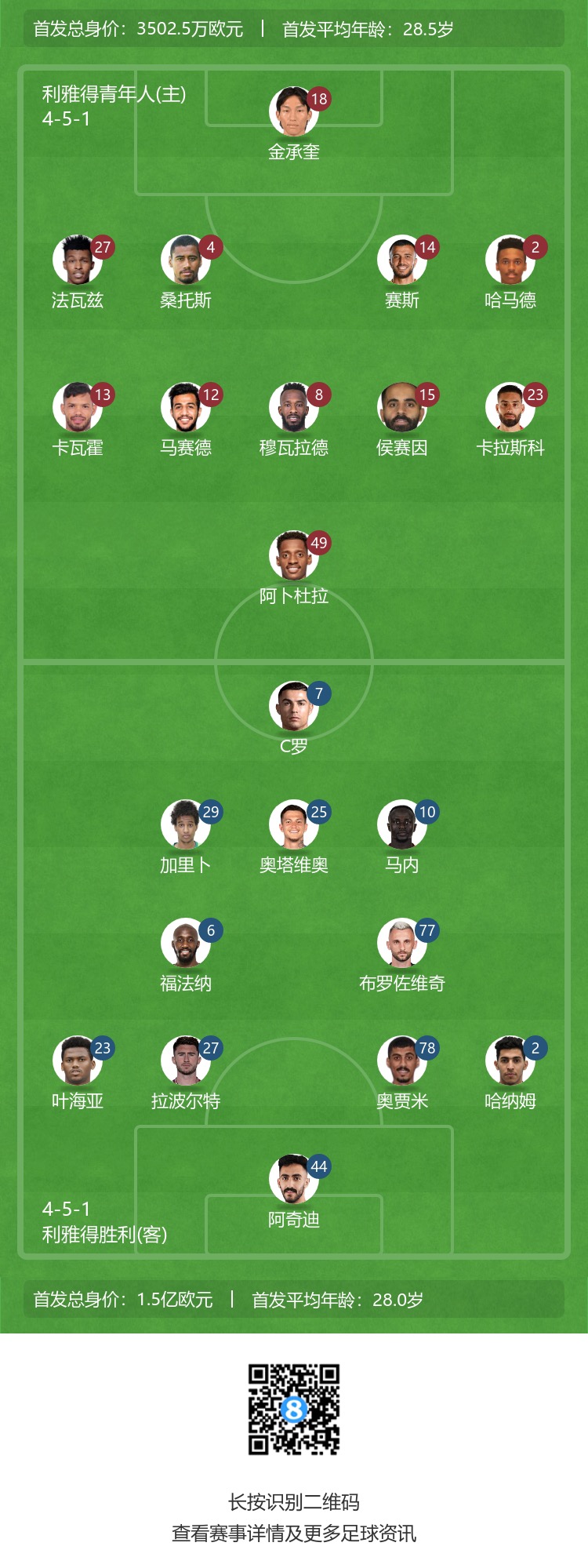 第17分钟,马内接福法纳直塞左脚打门被金承奎扑出!福法纳迅速跟上补射将球打进!利雅得胜利1-0领先利雅得青年人↓