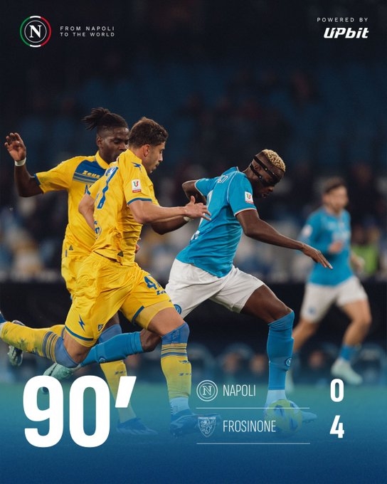 最终全场比赛结束,那不勒斯0-4弗洛西诺内,无缘八强。