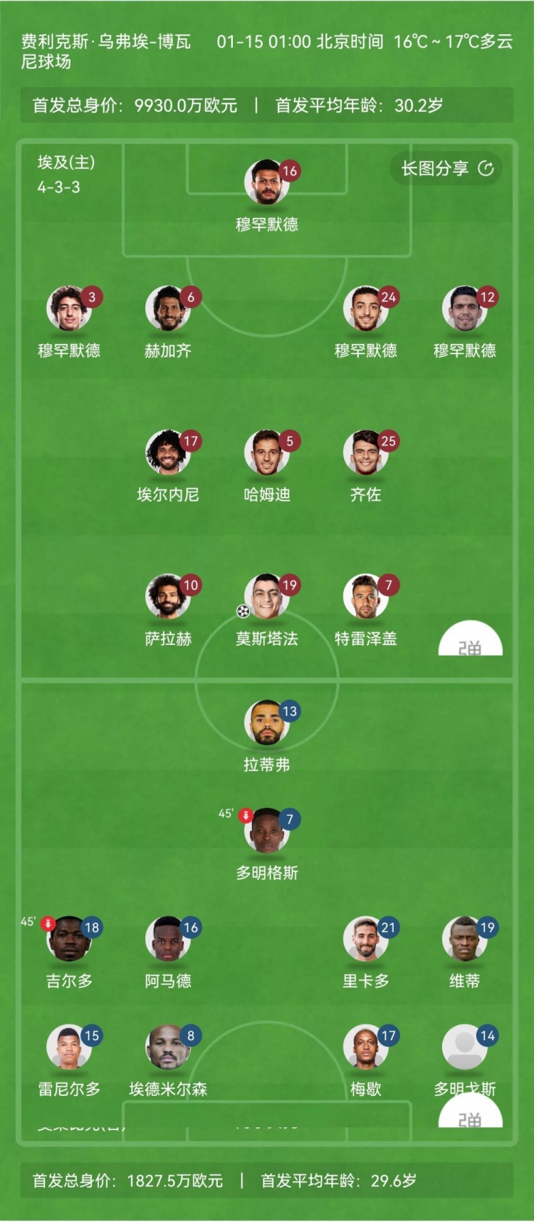 【双方首发及换人信息】