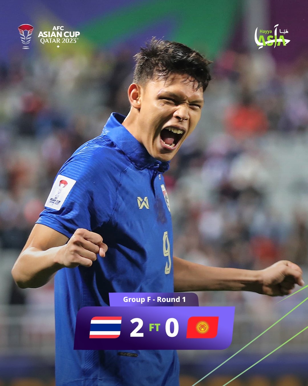 1月17日讯 北京时间22:30,亚洲杯F组首轮泰国vs吉尔吉斯斯坦。上半场,泰国队先后中柱+中楣,素巴猜破门;下半场素巴猜再下一城完成双响。最终泰国队2-0击败吉尔吉斯斯坦,取得亚洲杯开门红,先赛的情况下暂时登顶F组积分榜。