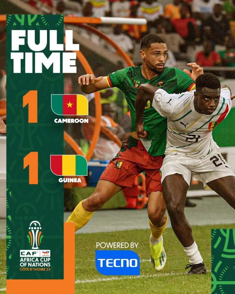 全场比赛结束,喀麦隆1-1几内亚。
