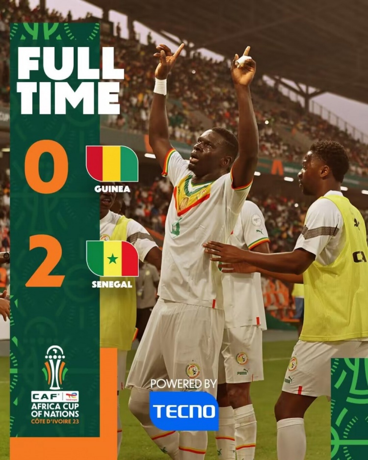 全场比赛结束,塞内加尔2-0几内亚。
