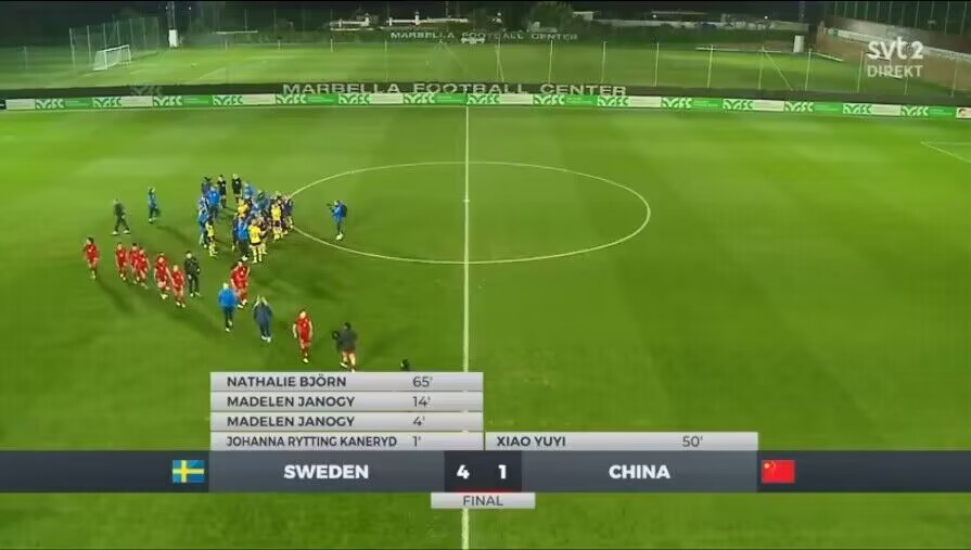 最终,瑞典女足4-1中国女足。