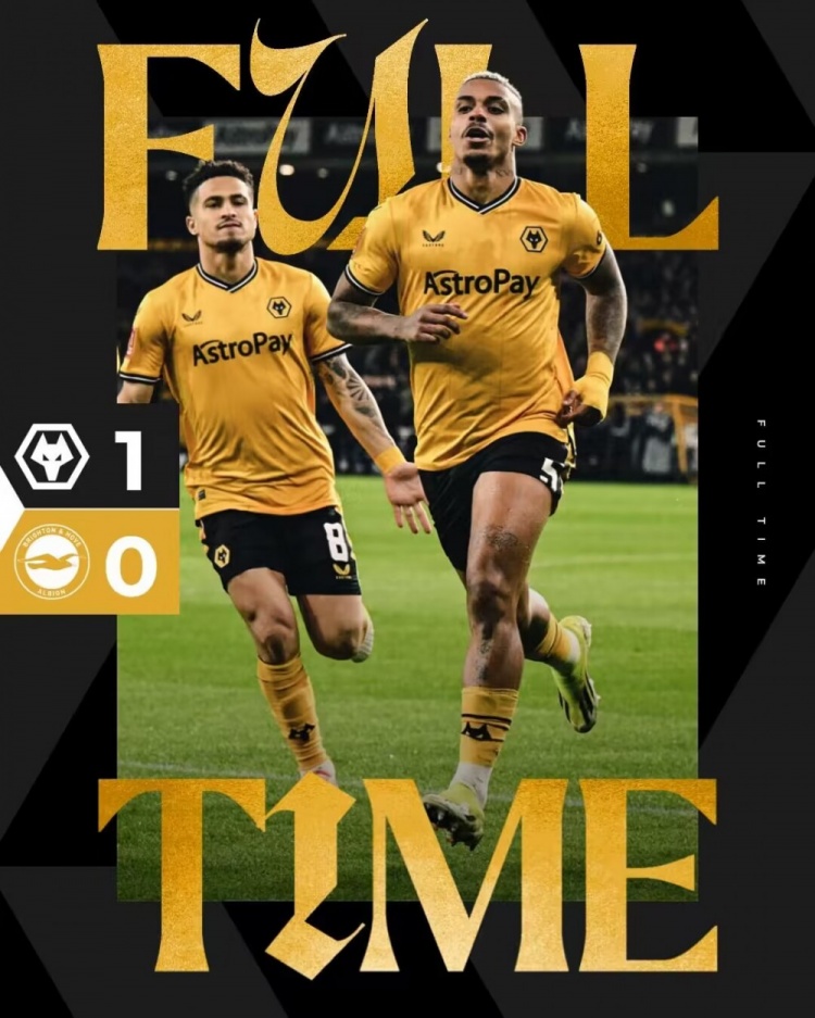 全场比赛结束,狼队1-0布莱顿。