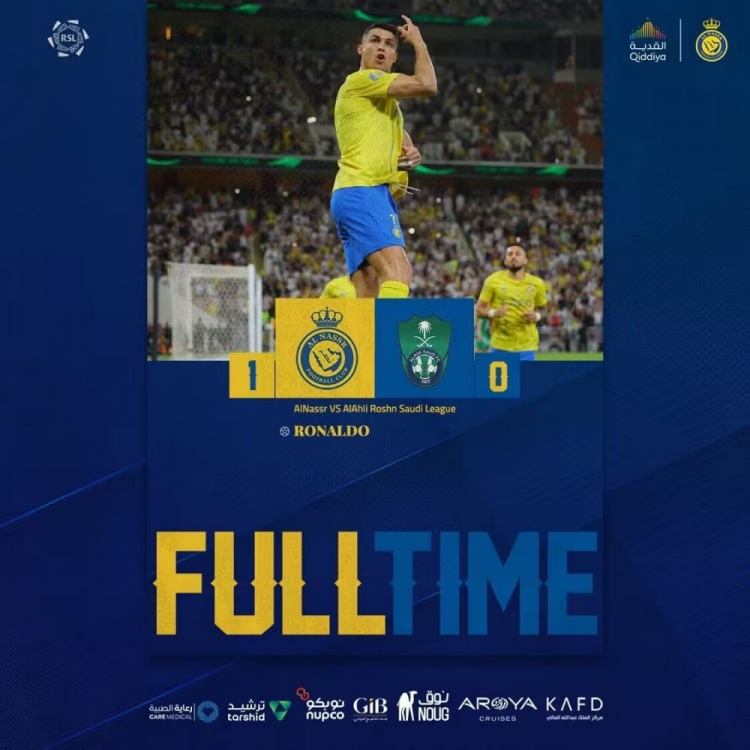 利雅得胜利首发:26-奥斯皮纳、15-特莱斯、27-拉波尔特、78-拉贾米(72'4-阿尔法蒂)、23-叶海亚(90'12-布沙尔)、17-哈巴利、77-布罗佐维奇、25-奥塔维奥、29-加里卜(89'19-阿尔哈桑)、10-马内、7-C罗