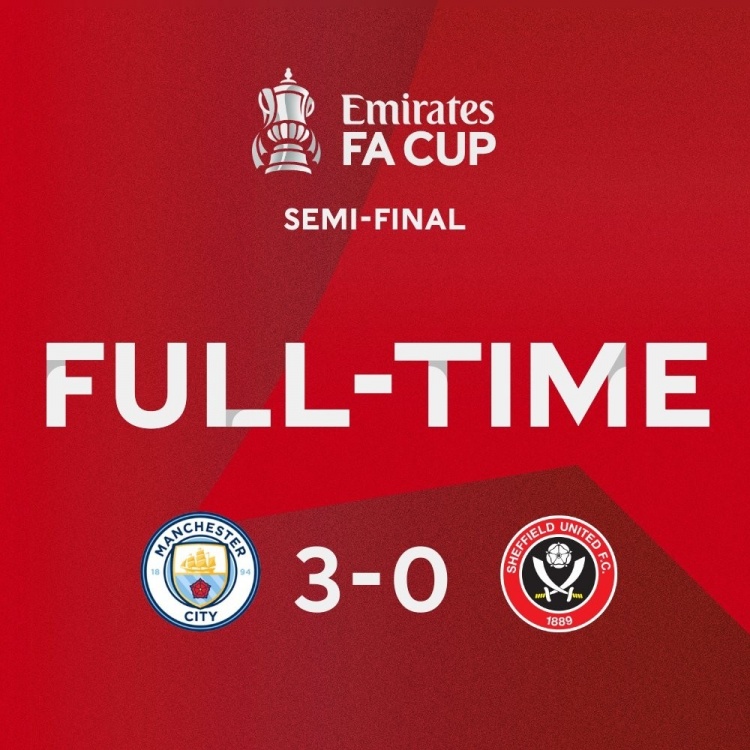 4月23日讯 北京时间4月22日晚23点45分,2022-23赛季足总杯半决赛在温布利大球场展开角逐,曼城对阵谢菲尔德联。上半场B席造点,马赫雷斯点射建功,下半场马赫雷斯上演帽子戏法。最终曼城3-0完胜谢菲联,蓝月亮顺利晋级足总杯决赛,决赛将迎战曼联与布莱顿之间的胜者。
