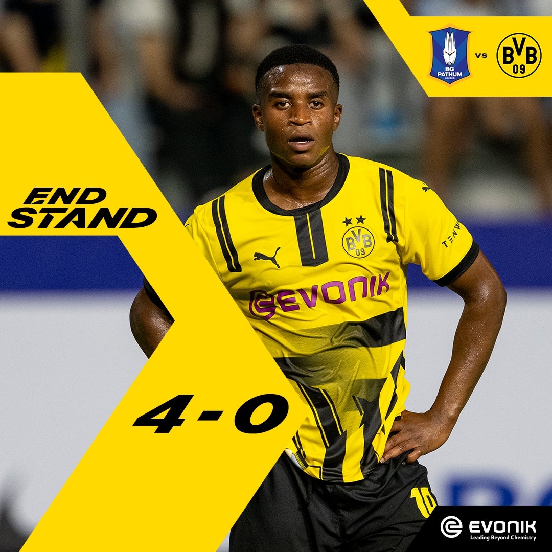 全场比赛结束,多特蒙德0-4巴吞联。