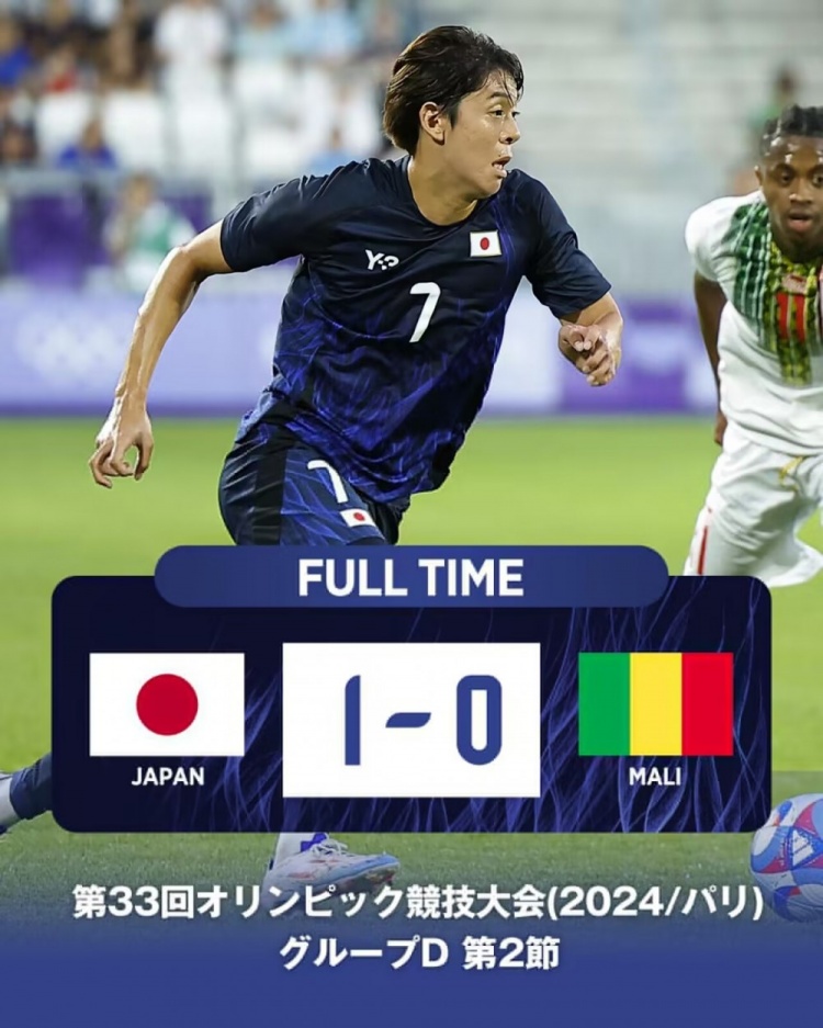7月28日讯 北京时间7月28日03:00,奥运男足小组赛D组第二轮日本国奥迎战马里国奥的比赛,上半场双方互有攻守但均无建树,小久保玲央献神扑,下半场谢斯纳-敦比亚头球中柱,山本理仁推射制胜,敦比亚补时失点,最终日本国奥1-0马里国奥提前一轮小组出线。