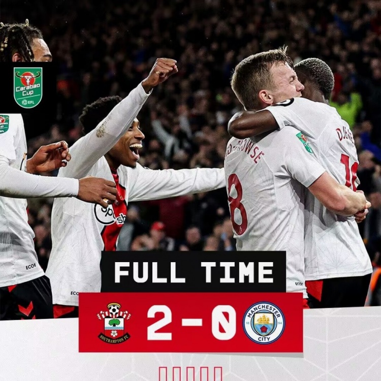 1月12日讯 北京时间1月12日04:00,英格兰联赛杯四分之一决赛曼城客场挑战南安普顿的比赛,上半场塞库-马拉建功,杰内波吊射破门,下半场双方均无建树,最终曼城客场0-2南安普顿爆冷遭淘汰。
