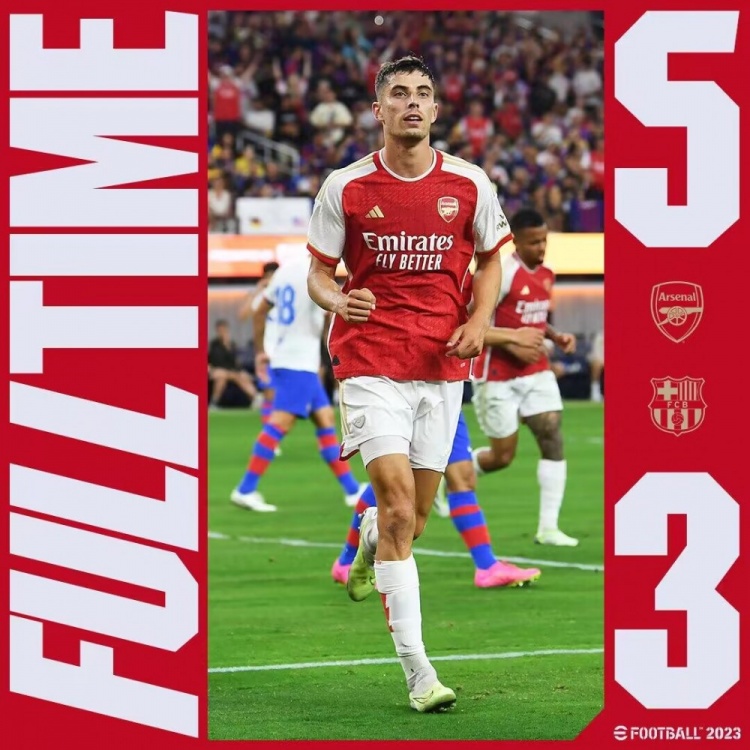 7月27日讯 季前赛阿森纳vs巴萨。上半场莱万补射破门,克里斯滕森乌龙助攻,萨卡笑纳大礼,随后萨卡失空门+失点,拉菲尼亚任意球直接破门,哈弗茨再次帮助阿森纳扳平。易边再战,双方先后大面积更换球员,特罗萨德双响,登贝莱、亚马尔中柱,费兰、维埃拉建功。最终阿森纳5-3巴萨。