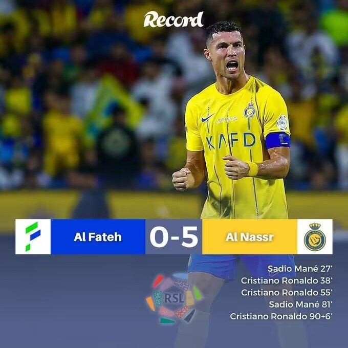 利雅得胜利首发:44-阿奇迪、2-哈纳姆(86' 12-纳瓦夫)、4-法蒂尔、27-拉波尔特、13-科南、17-哈巴利、77-布罗佐维奇(75' 14-纳吉)、25-奥塔维奥(90' 8-苏莱西姆)、29-加里卜(86' 11-加纳姆)、7-C罗、10-马内(86' 23-叶海亚)