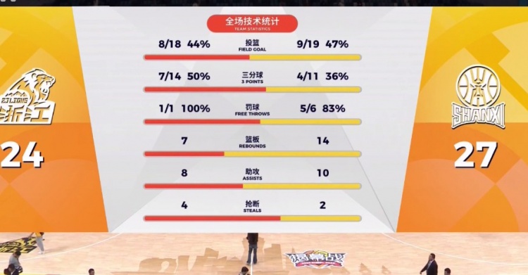 山西:秦子龙11分3板,于米提9分2板,韩霈瑜7分2板2助,张宁4助,葛昭宝3助,陈彭宇迪4板