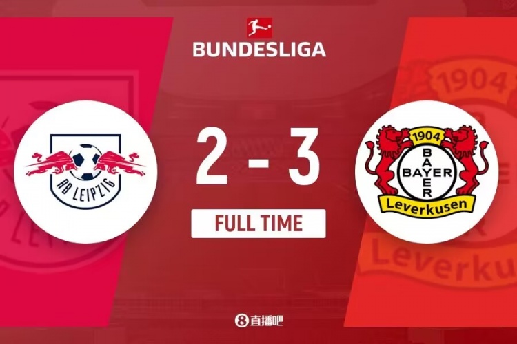 下半场补时4分钟,莱比锡红牛2-3勒沃库森。