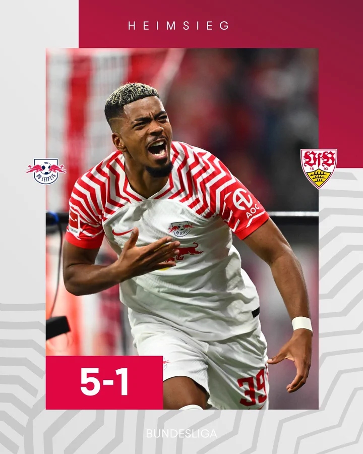 8月26日讯 德甲第2轮首场比赛,莱比锡主场5-1逆转斯图加特。