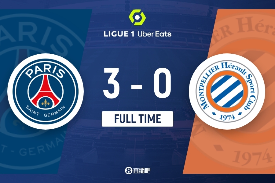 全场比赛结束,最终巴黎圣日耳曼3-0蒙彼利埃。