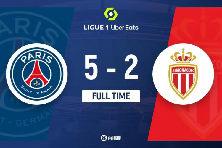 下半场补时6分钟。最终全场比赛结束,巴黎5-2摩纳哥。