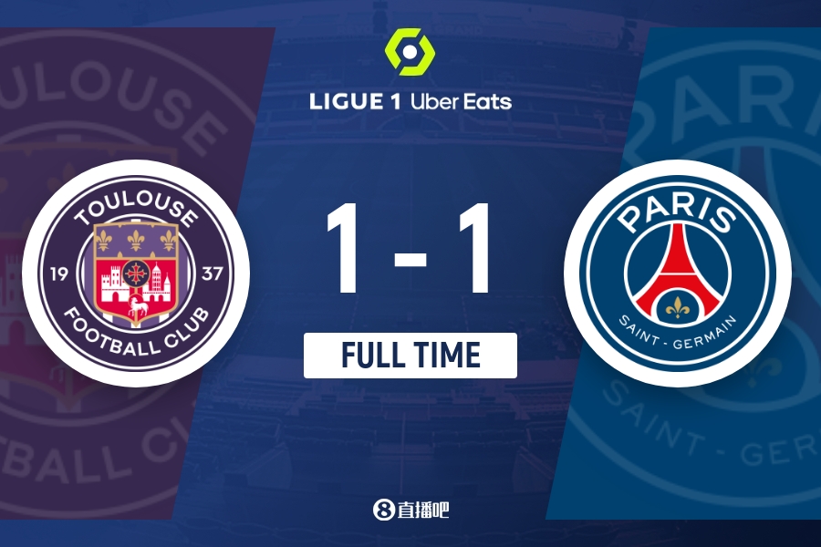 下半场伤停补时7分钟,全场比赛结束,最终巴黎圣日耳曼1-1图卢兹。