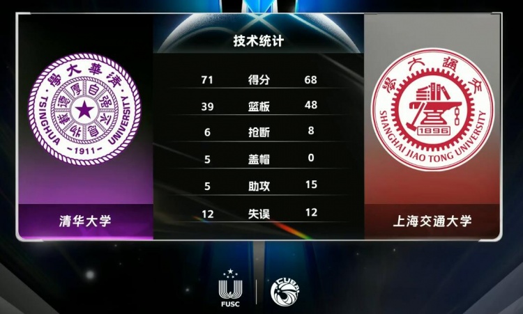 末节上海交大依靠胡汇的三分和王岩的补篮再次反超比分,但清华大学总能关键时刻拿分,以连拿4分的卢骏为首,清华大学不断冲击篮下拿分回敬11-2的攻势再次拉开比分。上海交大最后没有放弃,胡汇的补篮和吴泽昊的抢断上篮帮助他们在读秒阶段追至3分看到希望,不过最后绝平三分不中没能上演神奇。最终,清华大学71-68力克上海交通大学晋级全国巅峰4强。