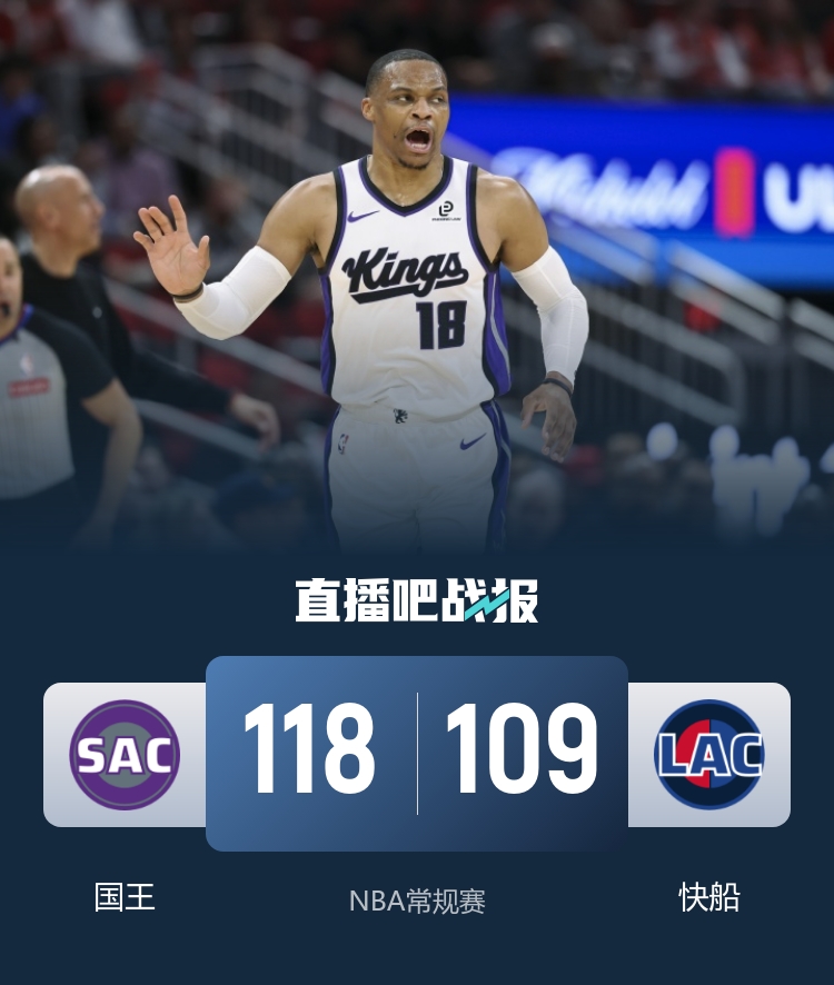 此役一上来双方迅速找到节奏,伦纳德状态火热单节独得13分,但德罗赞高效输出,率队多点开花强势回应,首节结束时国王领先2分,次节回来,快船进攻出现停滞,威少连投带罚串联全队,阿丘瓦予取予求,半场战罢,国王确立14分优势。易边再战后快船进攻依然没有起色,仅靠伦纳德苦苦支撑,国王稳扎稳打扩大优势,三节结束后国王继续领先17分,末节上来,快船找回感觉试图追分,但伦纳德脚踝扭伤本场第二次伤退,国王一波12-4杀死比赛,最终国王118-109力克对手。