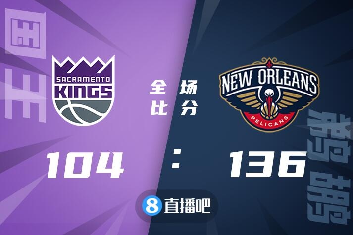 比赛开局,国王首发进攻状态不佳,鹈鹕很快建立两位数的领先优势,替补上场后国王稍稍迫近比分,次节鹈鹕延续进攻状态,外线多点开花,国王无法在进攻端匹配,鹈鹕一度打出一波11-0的进攻高潮,分差来到20分,半场结束,鹈鹕70-52领先。易边再战,国王依然没能打开进攻状态,鹈鹕延续场上优势,一举将分差拉开到30分。比赛很快来到第四节,两队交替得分,比赛很快失去悬念,进入垃圾时间,最终鹈鹕主场136-104大胜国王,取得两连胜。