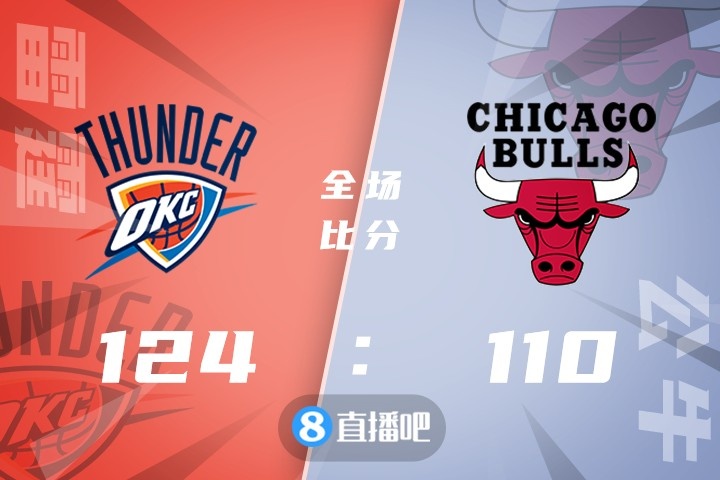 公牛(19-24):拉文25分6板5助、帕-威廉姆斯18分5板3助、武切维奇19分11板4助、卡鲁索11分4板5助5断、怀特19分6板6助。
