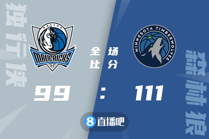 比赛开始,唐斯里突外投连续取分,森林狼外线连续发炮打出19-3梦幻开局,独行侠上来非常慢热,打了半节东契奇上篮命中首个运动战进球,随后还是东契奇连续突破追分,但首节独行侠依然落后18分,次节森林狼进攻端继续施压直接拉开近30分领先,格威终于命中独行侠第一记三分,欧文毫无比赛感觉,东契奇苦苦支撑依靠个人能力追到17分。下半场,独行侠直接换上5名替补,森林狼连续失误,大莫里斯接连三分命中,霍姆斯上来攻防两端都有贡献,独行侠打出18-4进攻波一度追到个位数分差,末节森林狼还是重新拉开比分,双方继续深度轮换并展开拉锯战,最终森林狼111-99力克独行侠。