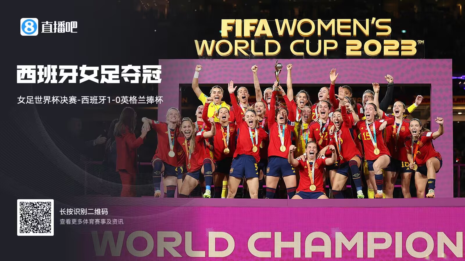 8月20日讯 北京时间今天18:00,女足世界杯决赛,西班牙女足vs英格兰女足。上半场,卡蒙娜低射远角建功,希普中楣,读秒阶段帕拉尔卢埃洛中柱。易边再战,卡尔登泰兜射造险,厄普斯扑出埃尔莫索点球。最终西班牙女足1-0英格兰女足,西班牙女足队史首夺世界杯冠军。