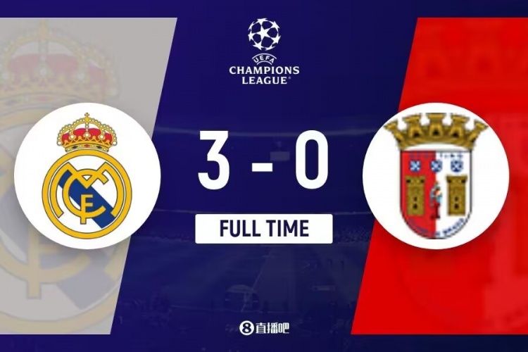 下半场补时3分钟。最终全场比赛结束,皇马3-0布拉加。