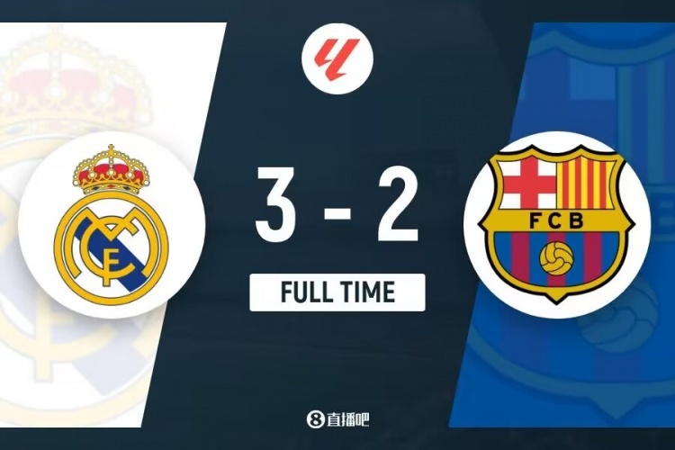 下半场补时4分钟。最终全场比赛结束,皇马3-2巴萨。